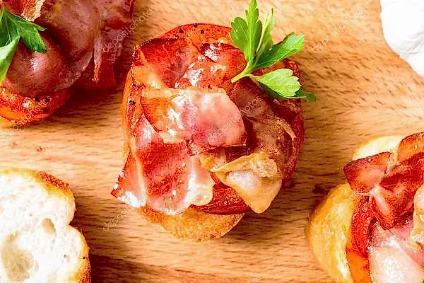 Состав:Pin-Up бекон, творожный сыр, томаты вяленые, зелень.