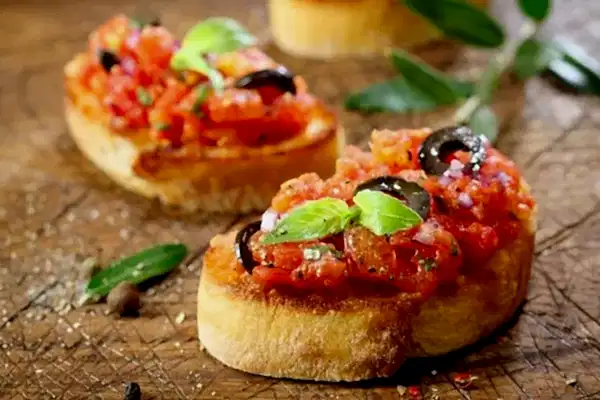 Состав:Багет, Pin-Up томаты, оливки, каперсы, базилик, чеснок.