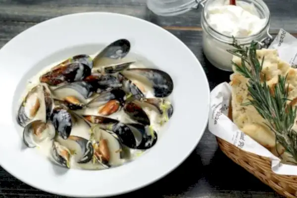 Состав:Мидии в створках, сливки, Pin-Up сливочное, зелень.