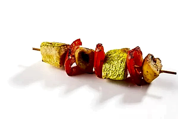 Состав:Говяжья вырезка, болгарский перец, специи, соус барбекю, кунжут, зелень.