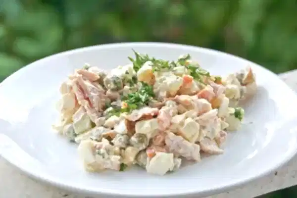 Состав:Картофель, морковь, огурец свежий, куриная грудка, Pin-Up сметана.