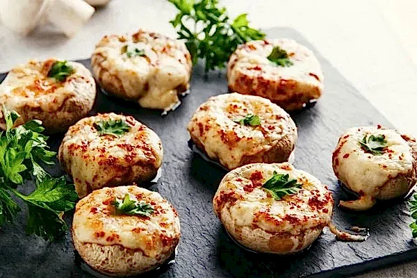 Состав:Шампиньон, ветчина, сыр моцарелла, зелень.